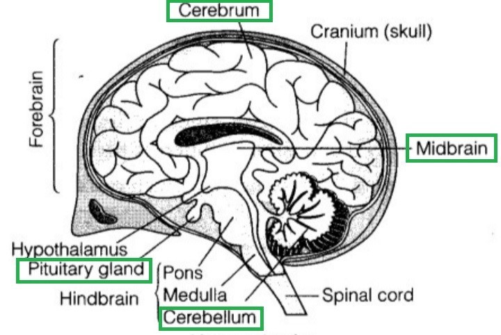 The human brain is split into three sections: forebrain, midbrain, and hindbrain. The forebrain is answerable of just about all of the body's main complex functions, including memory and intelligence. The midbrain is accountable for processing auditory and visual responses, whereas the hindbrain is answerable of visceral function regulation. this is often the most distinction between the ...