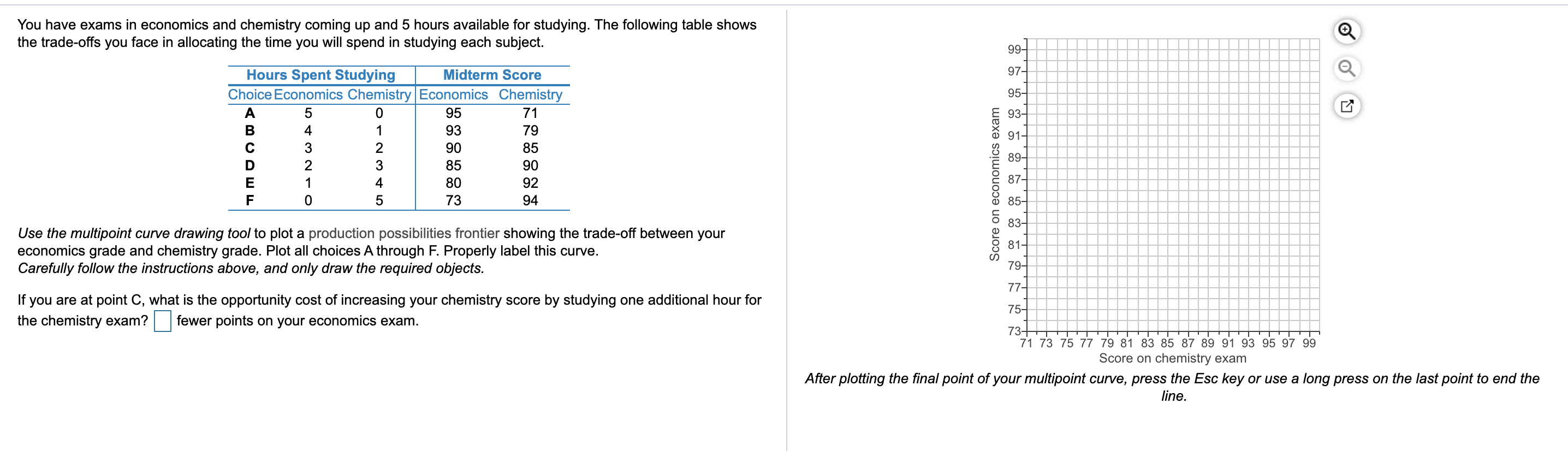 The demand schedule shows the combinations of price and quantity demanded of apples ... When graphing the demand curve, price goes on the vertical axis and ... The individual demand curve illustrates the price people are willing to pay for a particular quantity of a good. The market demand curve will be the sum of all individual demand curves. It shows the quantity of a good consumers plan to buy at different prices. 1. Change in price. A change in price causes a movement along the Demand Curve. 1. The production possibility curve shows the possible combinations of two goods that a country can produce in a given period of time. Assuming that the country is already producing on the curve, the production of more of one good will involve pro-ducing less of the other. This opportunity cost is illustrated by the slope of the curve. 2. Assuming that the demand curve slopes downward and that the supply curve slopes ... The graph shows that supply and demand do not intersect in the positive ...