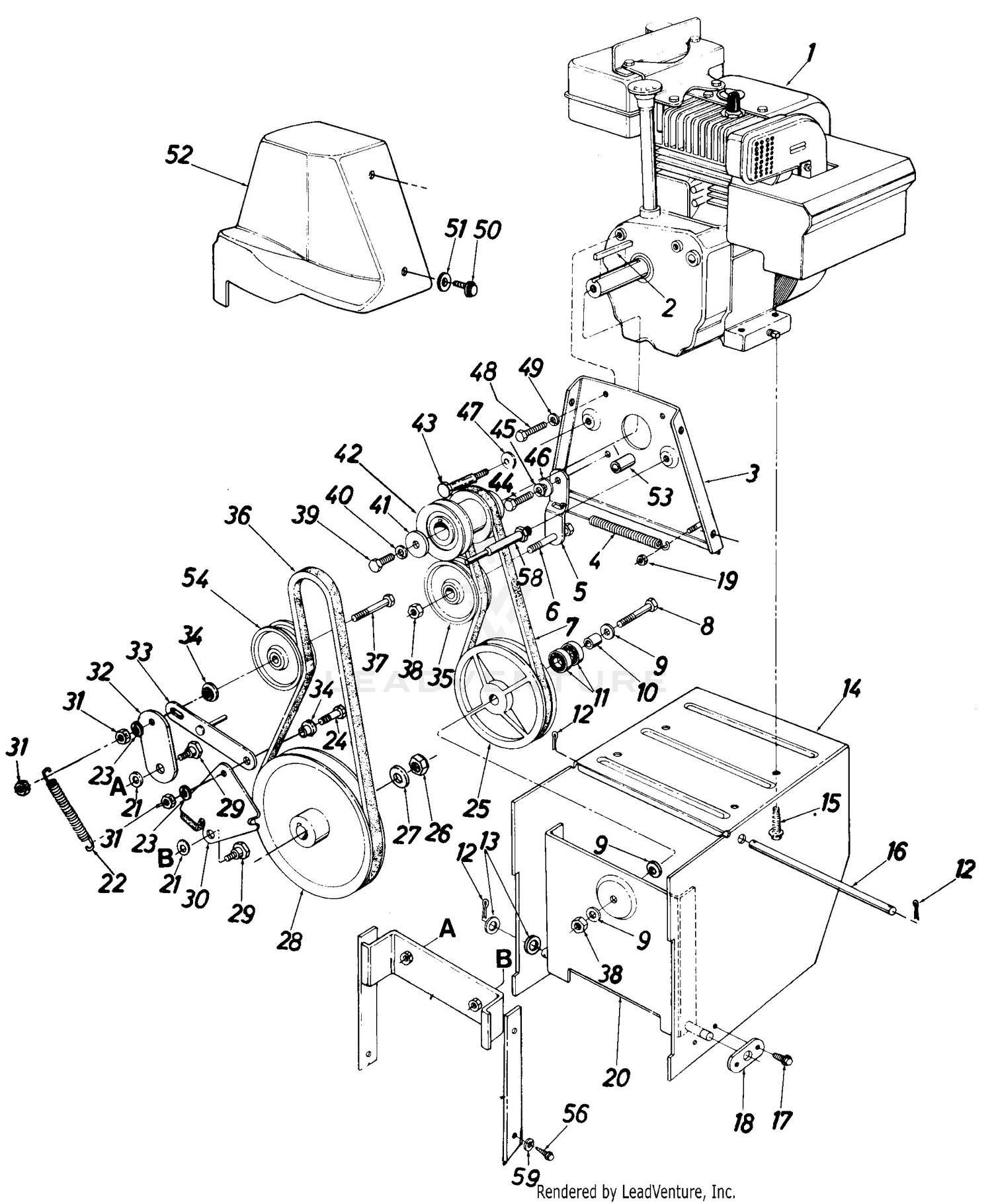Mtd 313-660g000 (1993) parts diagram for engine and pulley ...