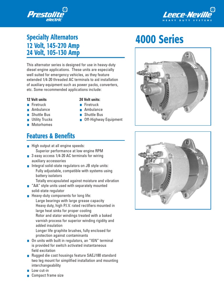Leece neville 160 amp alternator wiring diagram. Heavy Duty Leece Neville Truck And Bus Alternators Prestolite Leece Neville 110 555pho 12volt 160amp Prestolite Alternator Pad Mount 1 Prestolite Leece Neville Duvac Alternator Wiring Diagram Nissan Terrano Wiring Diagram Gravely Ke2x Jeanjaures37 Fr Prestolite Leece Neville
