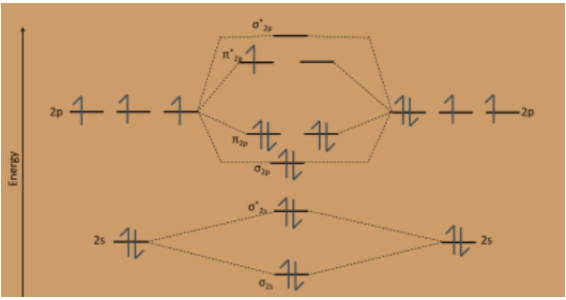 The molecular orbital diagram representing this order of energy levels is shown in fig. This kind of mixing of orbitals or symmetry interaction is not applicable for O2 and F2 molecule formation because of larger energy gap between 2s and 2p orbitals for these atoms.