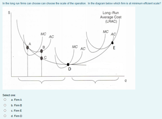 In the above diagram, with a U-shaped LRAC curve, the minimum efficient scale is Q 0. The size of a firm is often measured by its long-run output level which depends to a large extent on the minimum efficient scale. If the minimum efficient scale is low, the firm will tend to be small. Conversely, if the minimum efficient scale is high, the ...