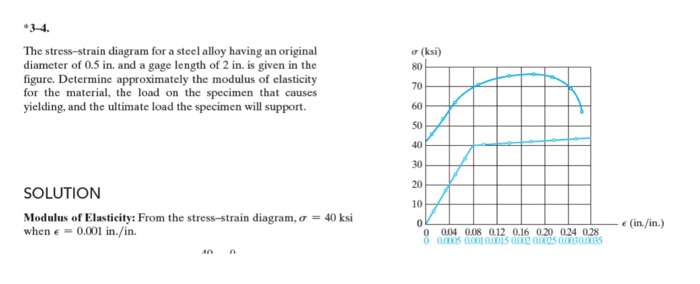 3-5. The stress-strain diagram for a steel alloy having an ... The stress–strain diagram for a steel alloy having an original diameter of 0.5 in. and a gauge length of 2 in. is given in the figure. If the specimen is loaded ...1 answer · 0 votes: Que - 3-5. The stress - Strain diagram for a steel alloy having an original diameter of 12 mm and gauge length of somm is given in Fig. It the specimen ...
